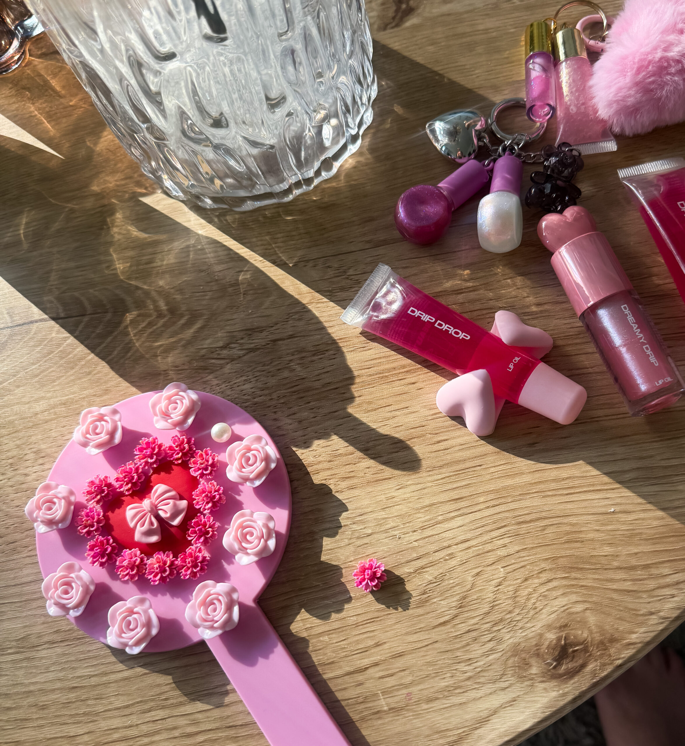 Idag har jag haft en pyssel söndag och det är så rogivande. Har fortfarande ont i benet så trots det vackra vädret avstår jag från en promenad. Igår gick jag en hel del och behöver vila benet en heldag. Därför har jag passat på att pyssla och har bland annat dekorerat en handspegel med pärlor och krämlim. På bilden nedanför ser ni när jag testar mig fram med vilka pärlor som jag ska använda. Spegeln är rosa med ett rött hjärta i mitten och ville förvandla den till något helt annat.