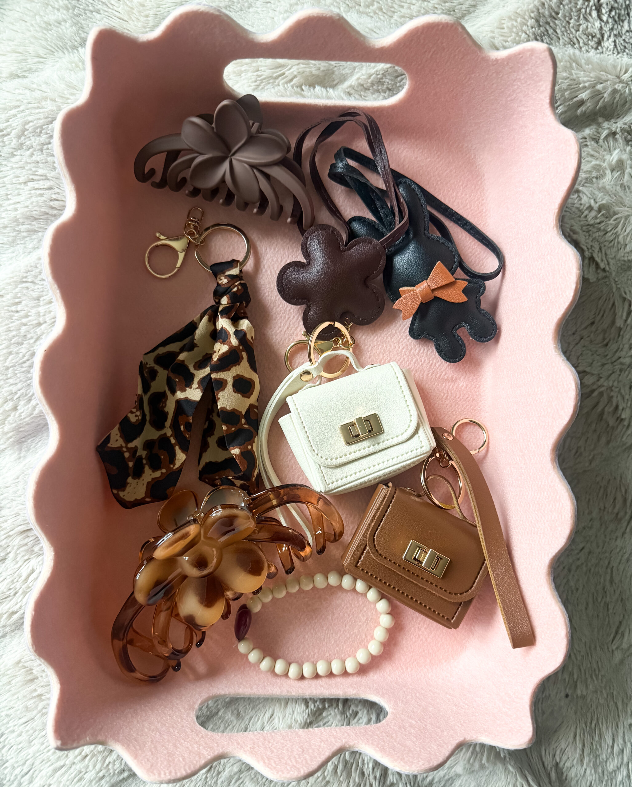 Valde ut två stycken väskdekorationer som hänger på dragkedjan. Tycker att det gav väskan ett lyft och kan byta ut dom när jag vill ha något annat för tillfället.